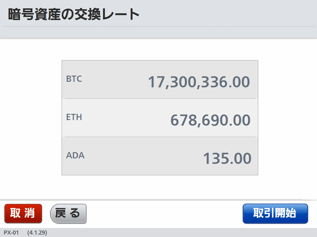 4取引レートと取引額ごとの参考暗号資産数量を確認します