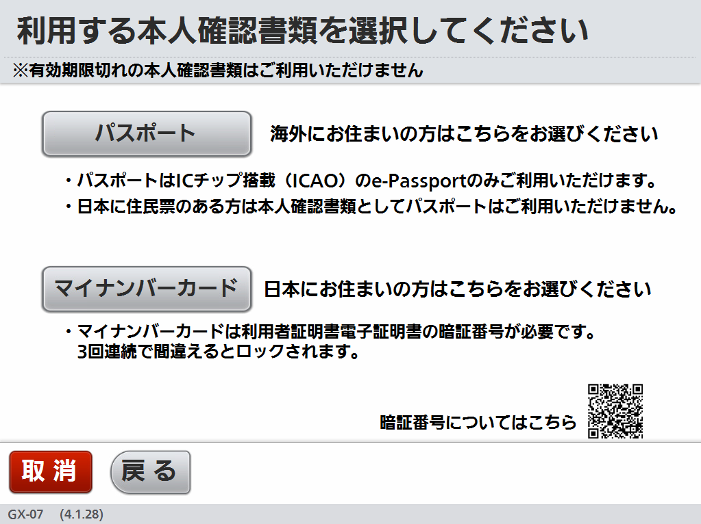 本人確認書類(マイナンバーカード/パスポート)をご準備ください