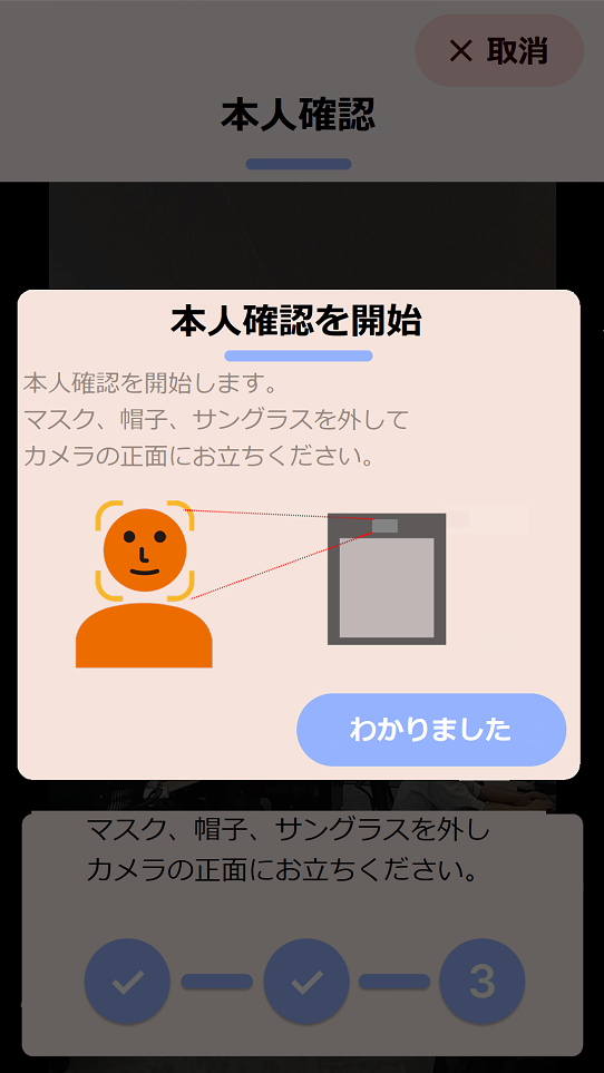 3顔認証で本人確認をします