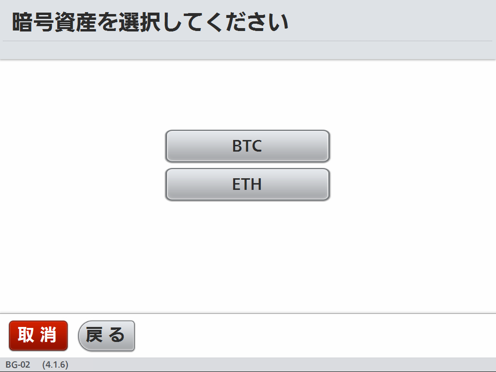 BTM両替購入1購入したい暗号資産を選択します
